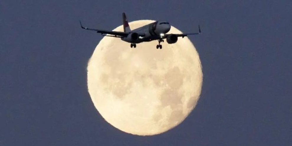 A TAP Air Portugal Airbus A320 is silhouetted against the setting moon while approaching for landing in Lisbon, Portugal, June 23, 2024. (AP Photo/Armando Franca, File)