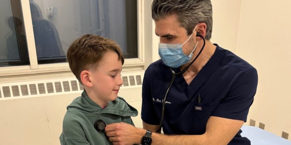 A doctor treats a young patient inside the emergency department at Stevenson Memorial Hospital in Alliston, Ontario.