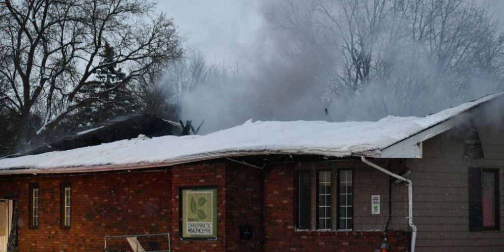 Barrie firefighters had six trucks on scene early this morning, battling a blaze at a chiropractor's business on Essa Road, just south of Burton Avenue.