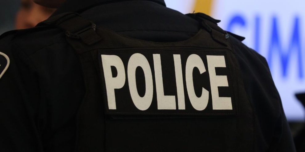 FILE - A police wordmark is seen on an Barrie Police officer's uniform in Barrie, Ont., Apr. 2, 2026. Photo—Julius Hern/Barrie360.