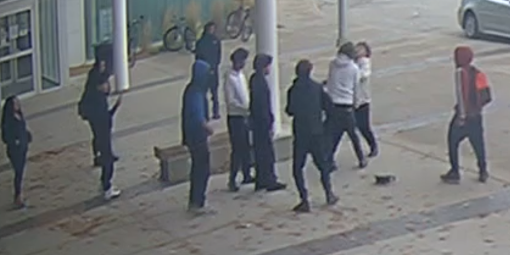 At 12:50 p.m. Wednesday, police received multiple reports of a large altercation which involved 10-15 youths and an older male. Within one minute of the initial call, officers arrived on scene.
