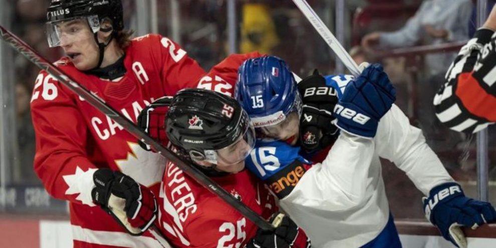Canada, which needed a spine-tingling OT winner from Connor Bedard and goaltending heroics from Thomas Milic to beat Slovakia 4-3 in the quarters in Halifax three years ago on the way to its last podium-topping finish, pressed the gas pedal after a hard-hitting start.