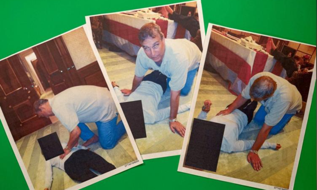 They include an invitation for Epstein to dine at Buckingham Palace, Epstein’s offer to introduce his correspondent to a 26-year-old Russian woman, and photos that appear to show Andrew kneeling over an unidentified woman who is lying on the floor.