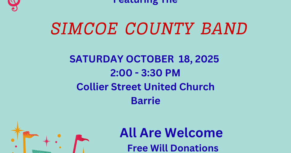 Simcoe County Band is a concert band consisting of 25 members playing a selection of popular music including medleys from classical transcriptions, movies and arrangements of current day popular music. All are welcome to come out and enjoy a musical afternoon