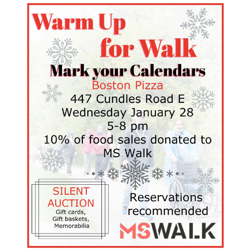 Ten percent of all food sales will be donated to the MS Walk in support of Canadians living with multiple sclerosis.