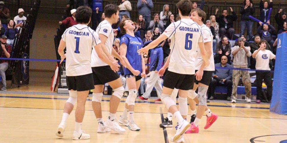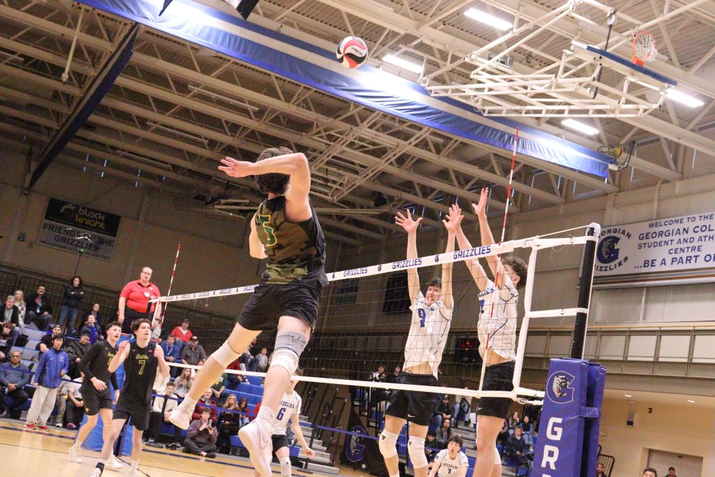 Georgian's men's volleyball team was pushed to five sets in a tight OCAA round of 16 win on Michele McConney Court against St. Clair on Saturday afternoon.