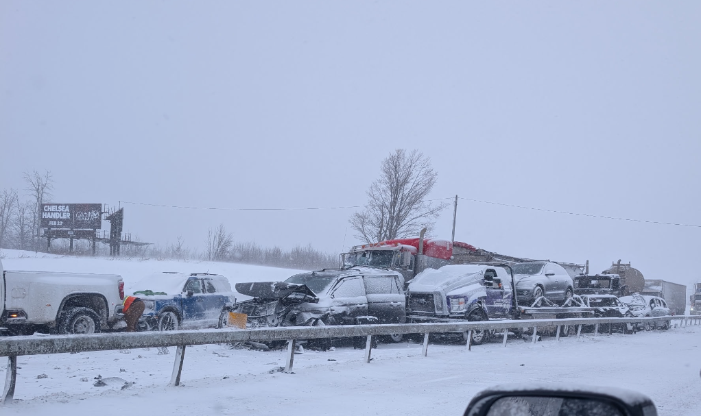 In a post on social media, Oro-Medonte Township Fire Chief Roree Payment said the collision involved at least 40 vehicles, and one person was trapped, with multiple vehicles on fire "impinging" on a gasoline tanker truck.