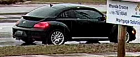 Investigators also say the suspect was driving a black Volkswagen Beetle with silver spoked rims and a rear spoiler.