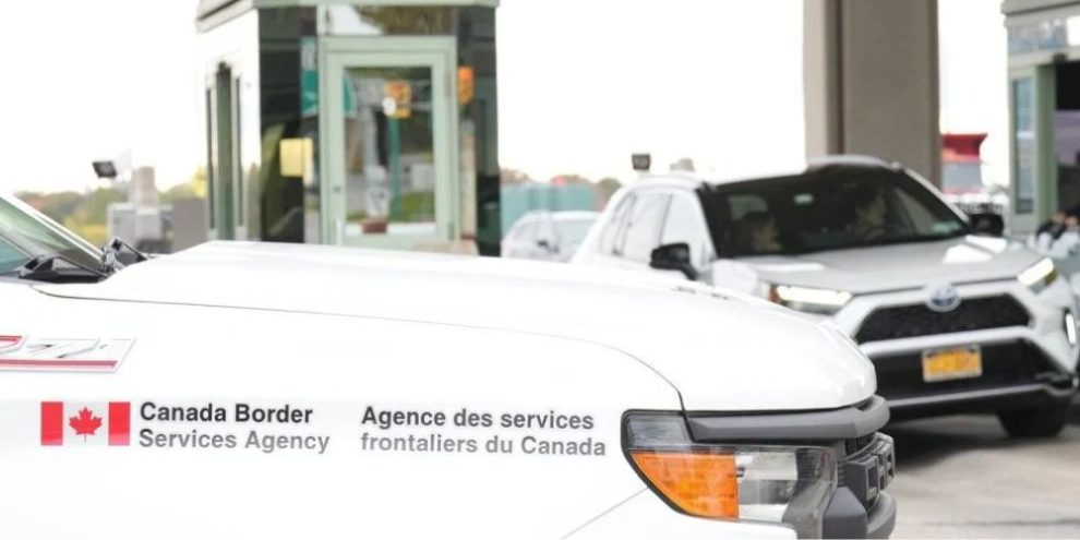 A Canada Border Services Agency vehicle is seen at the Rainbow Bridge border crossing in Niagara Falls, Ont., on Friday, Oct. 17, 2025. THE CANADIAN PRESS/Nathan Denette