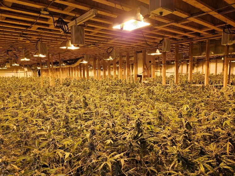 A search warrant was executed at a rural property on Chemin du Loup after an earlier investigation revealed that it was the site of a large-scale grow operation.