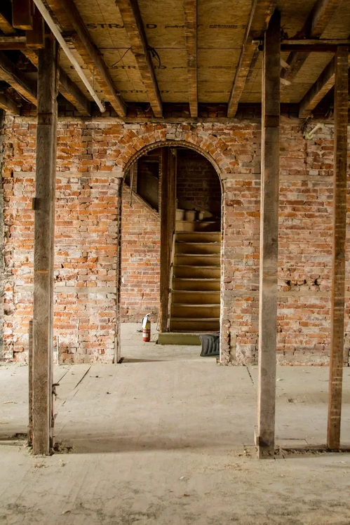 Chris explains, “We’re not putting drywall over 200-year-old brick. This building is what it is and we just kind of roll with it.” So much so that Chris plans to change the pillars out front from an Italian looking pillar back to the barn style, based on an original photo.