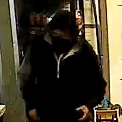 - Wearing a black hoodie, dark-coloured pants, black leather shoes and a black mask