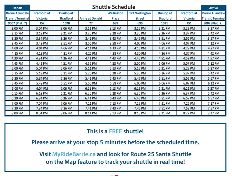 To avoid traffic, a free Barrie Transit shuttle is available, provided by the Barrie Chamber of Commerce.