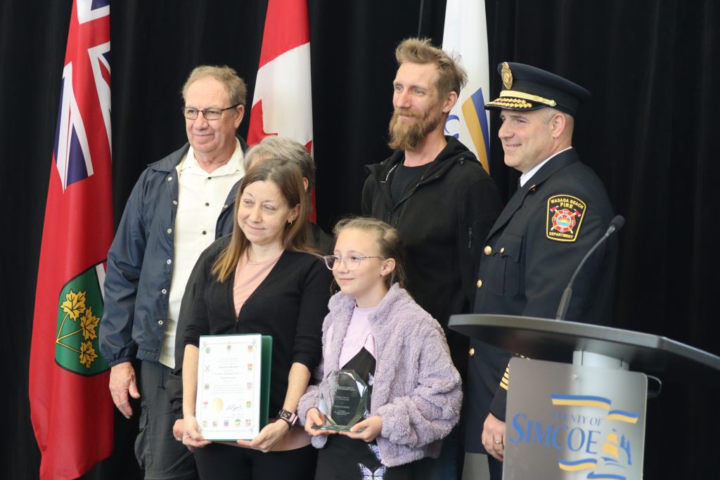 Eight-year-old Charlotte Bieniek was recognized for helping save her mother’s life during a paddleboarding incident on the Nottawasaga River last July. After her mother became unresponsive, Bieniek tied their boards together and paddled roughly 500 metres to shore before calling for help and assisting first responders.