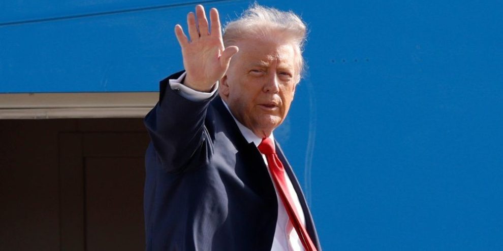President Donald Trump waves from the stairs of Air Force One as he boards upon his arrival at Joint Base Andrews, Md., Friday, Oct. 31, 2025, en route to his Mar-a-Lago estate in Palm Beach, Fla. (AP Photo/Luis M. Alvarez)