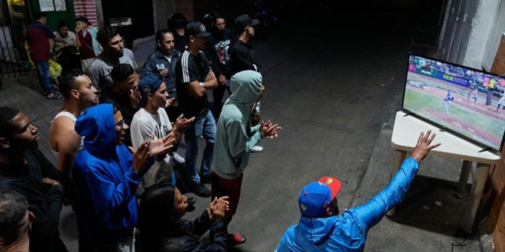 Venezuela fans watch the championship match of the World Classic Baseball between the United States and Venezuela, in Caracas, Venezuela, Tuesday, March 17, 2026. (AP Photo/Ariana Cubillos)